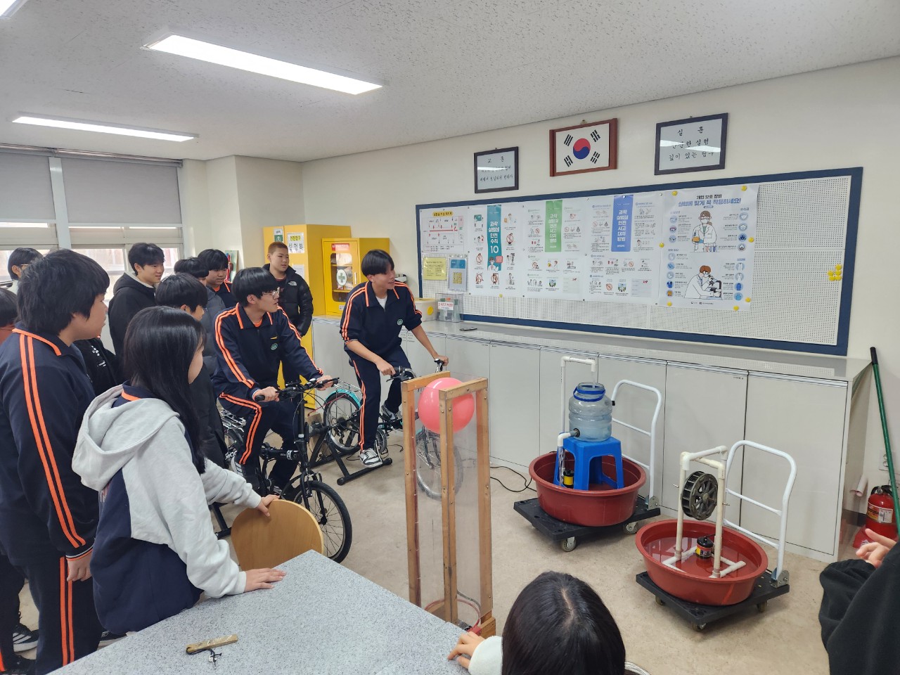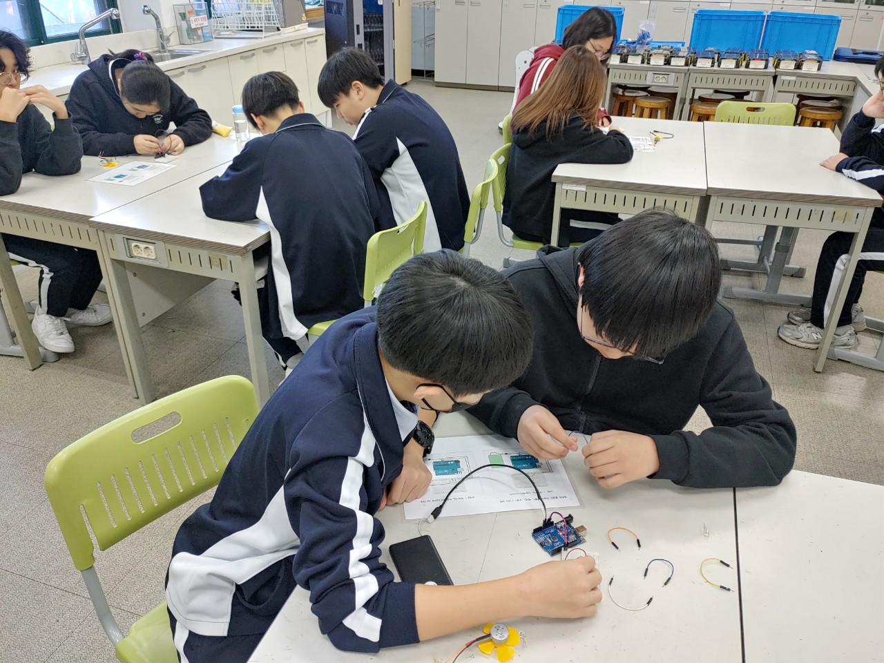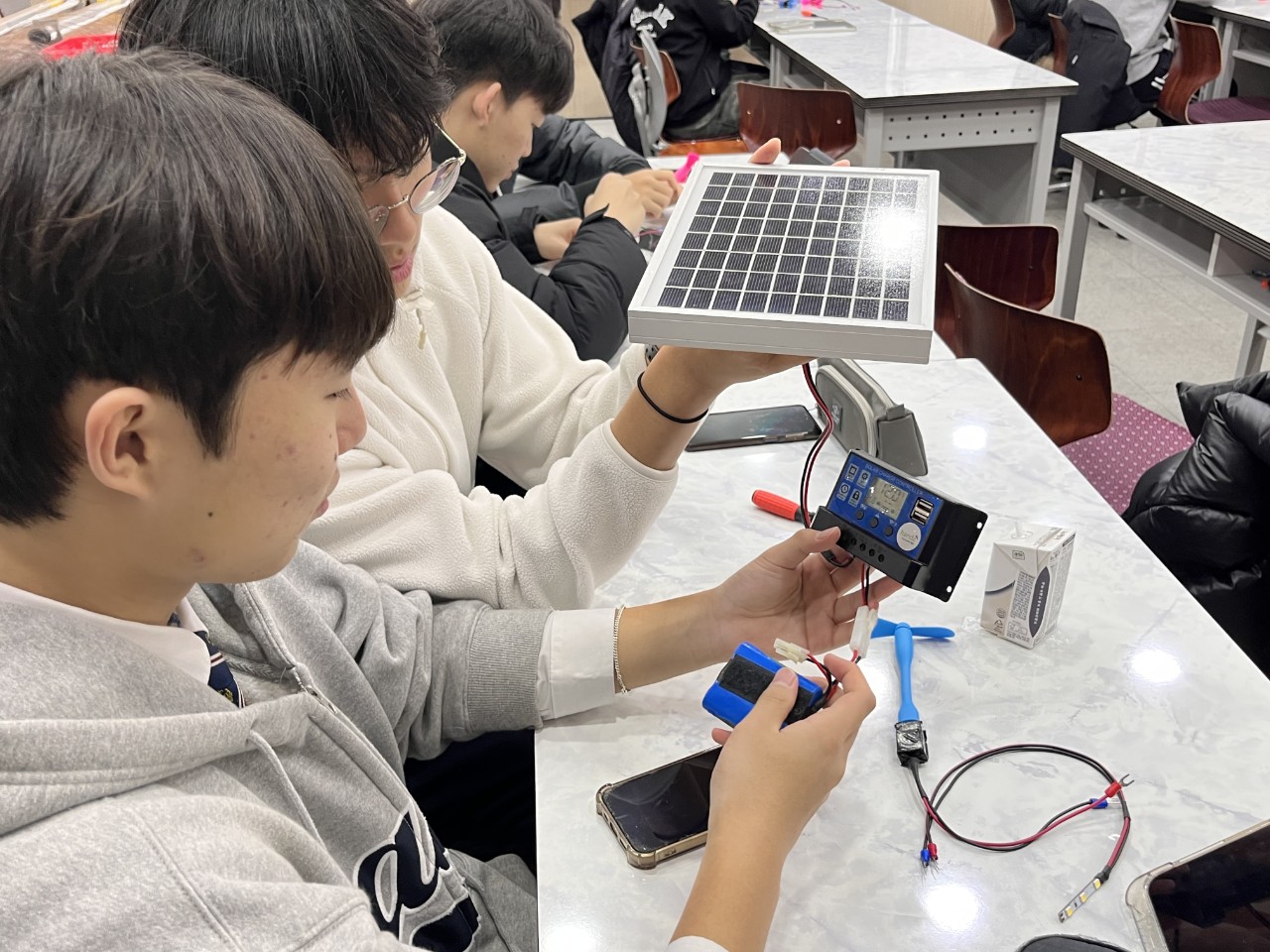 24일에 저는 범준샘, 선영샘과 함께 건대부고에서 생태전환교실을 진행했습니다. 태양광실습과 아두이노 실습을 범준샘이 진행했고, 저는 인간동력발전과 IoT실습을 진행했답니다. 수업을 마치고 점심도 맛있게 먹을 수 있었네요.
