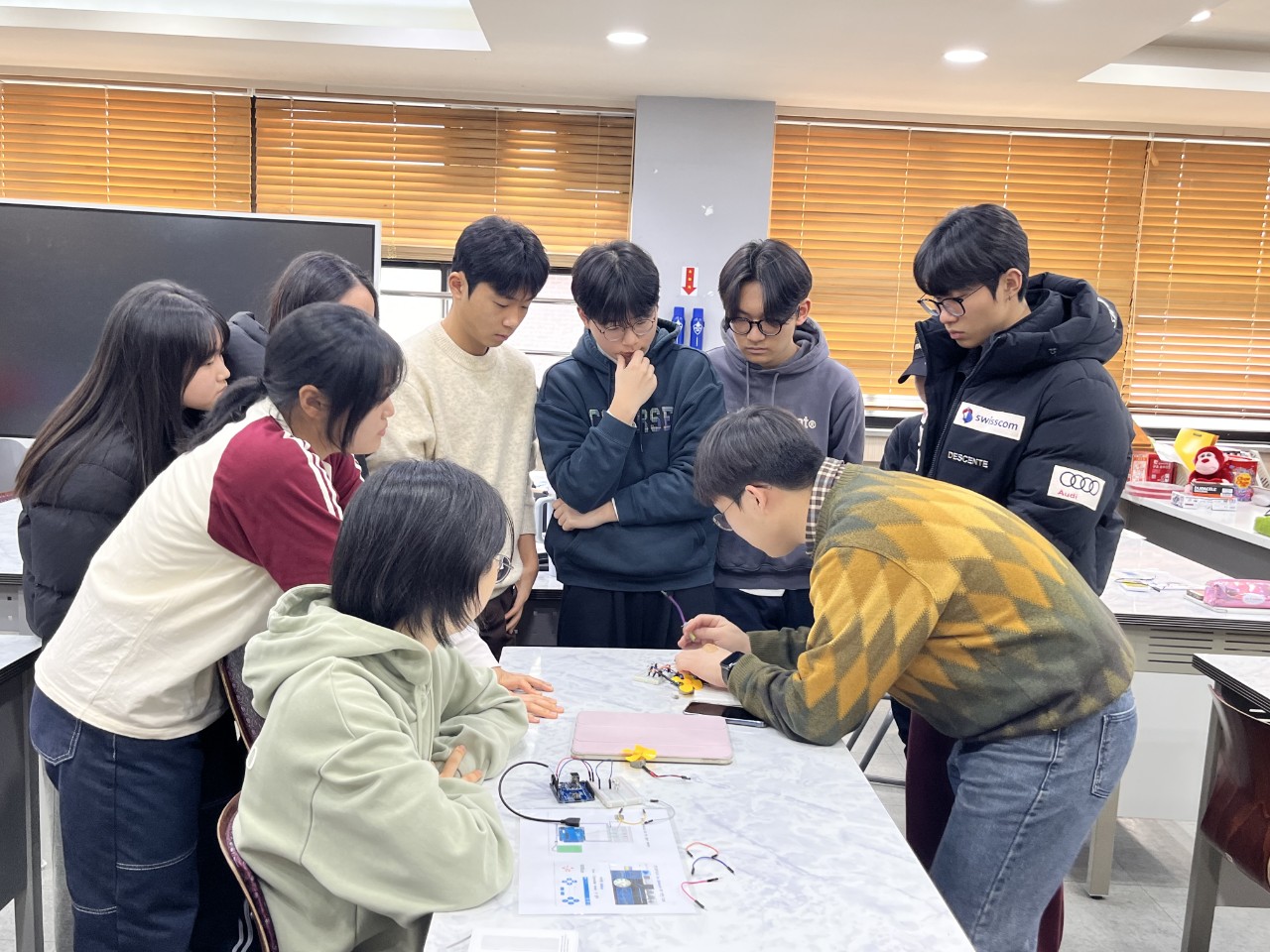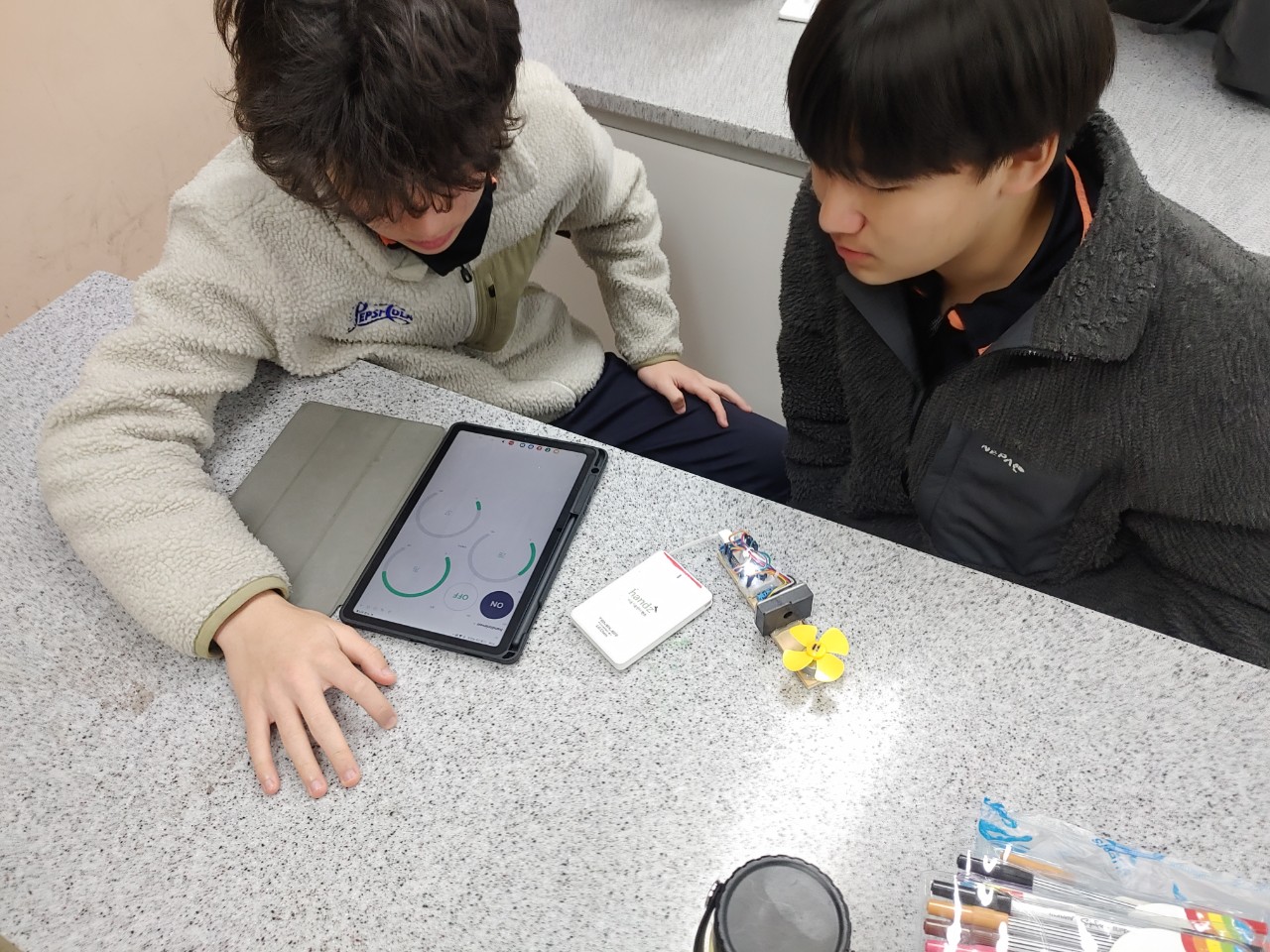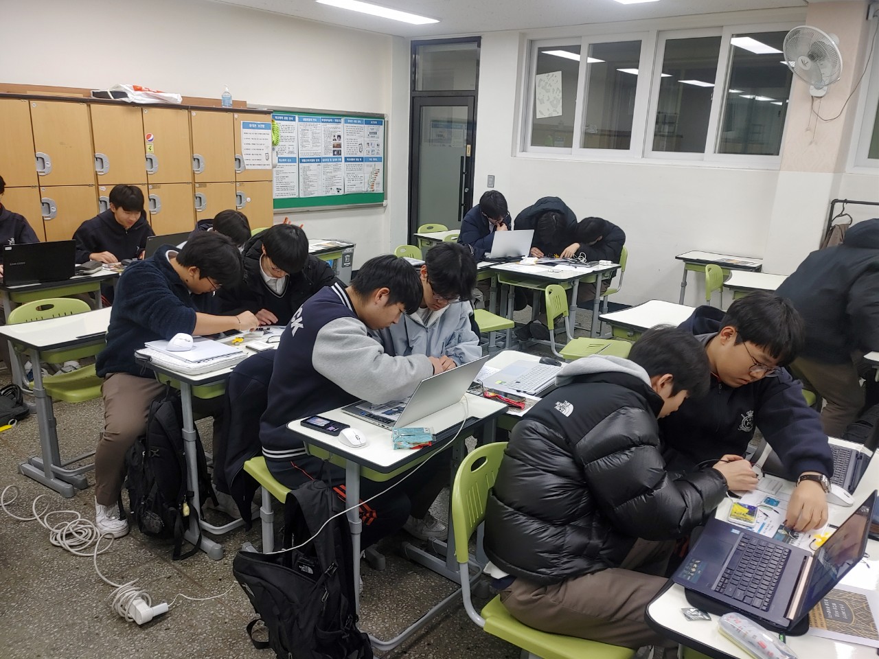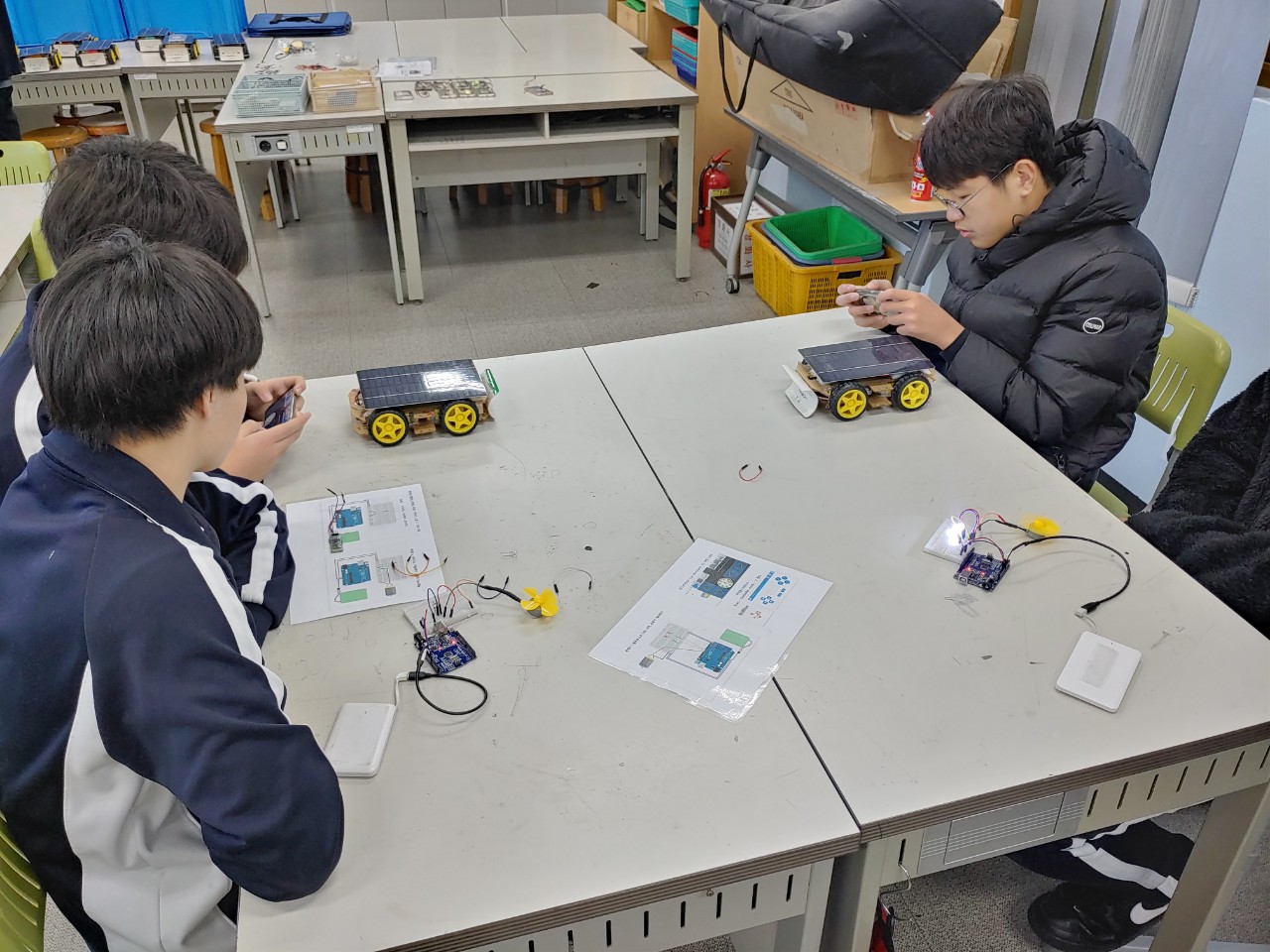 12월 2일과 3일은 별샘과 함께 용곡중학교에서 3학년들과 적정기술과 에너지 심화과정을 진행했습니다. 작년에도 만났던 친구들이라서 그때 하지 못했던 아두이노 실습, 자전거발전기, IoT실습, 적정기술 아이디어 모으기까지 진행할 수 있었습니다.