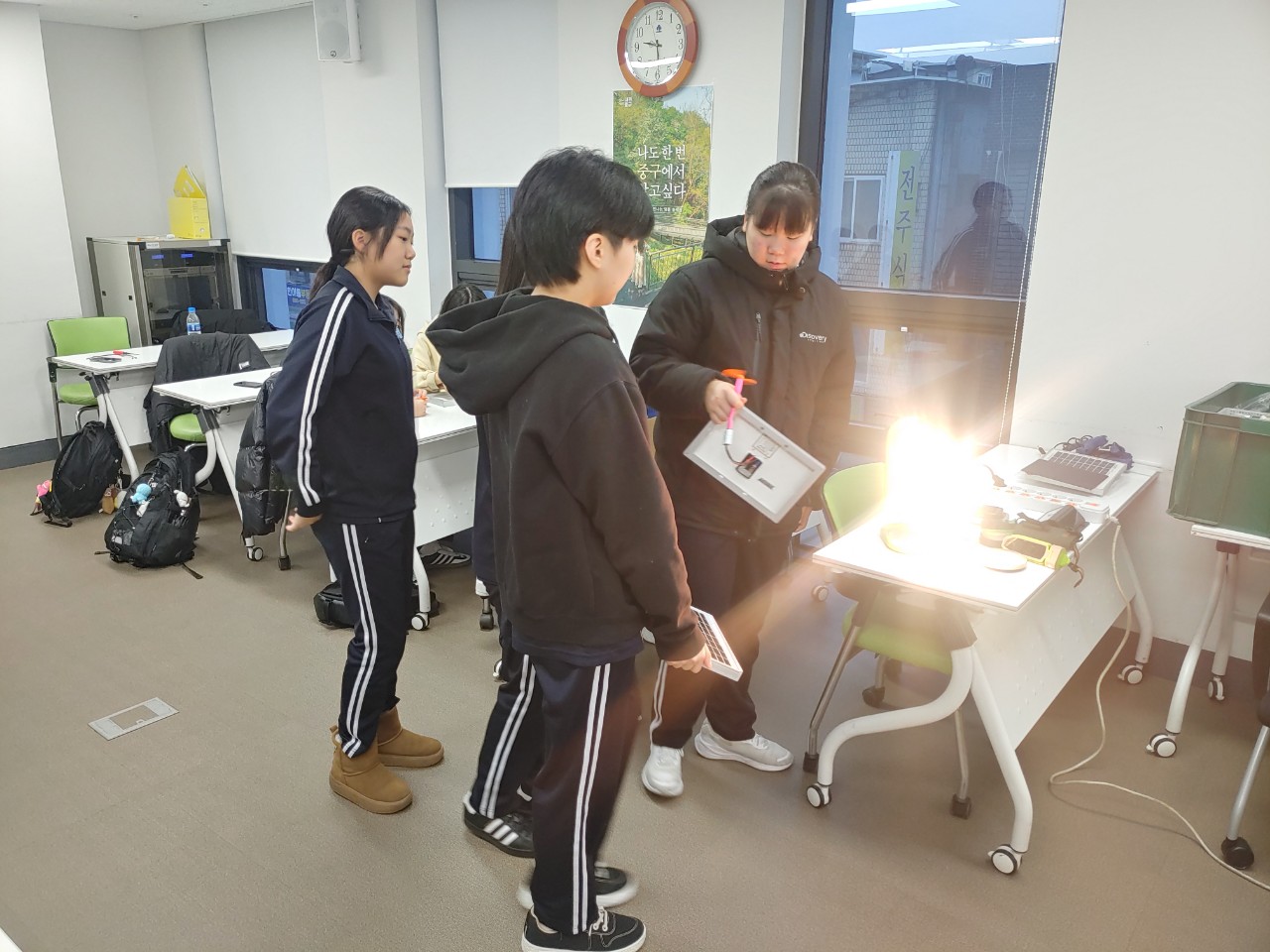 15일과 16일에는 중구에 가서 창덕여중과 장원중학생들을 만났습니다. 태양광실습과 줄넘기발전기 실습도 하고, 햇빛저금통 만들기도 하며 에너지와 만들기에 대한 이야기를 나눌 수 있었습니다.