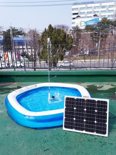 | 6. 햇빛분수 / 햇빛물레방아 태양전지판에 비친 햇빛을 이용해서 분수를 만듭니다. 햇빛이 나면 분수가 작동되고 햇빛을 가리면 분수가 작동되지 않습니다. 햇빛에너지의 의미를 교육적으로 바로 설명하고 체험할 수 있는 교구입니다. 분수 대신 물레방아를 연결하면 햇빛의 힘으로 물레방아를 돌릴 수 있습니다. [실재료비 햇빛분수 26만원, 물레방아만 15만원] [완제품 햇빛분수 36만원] |