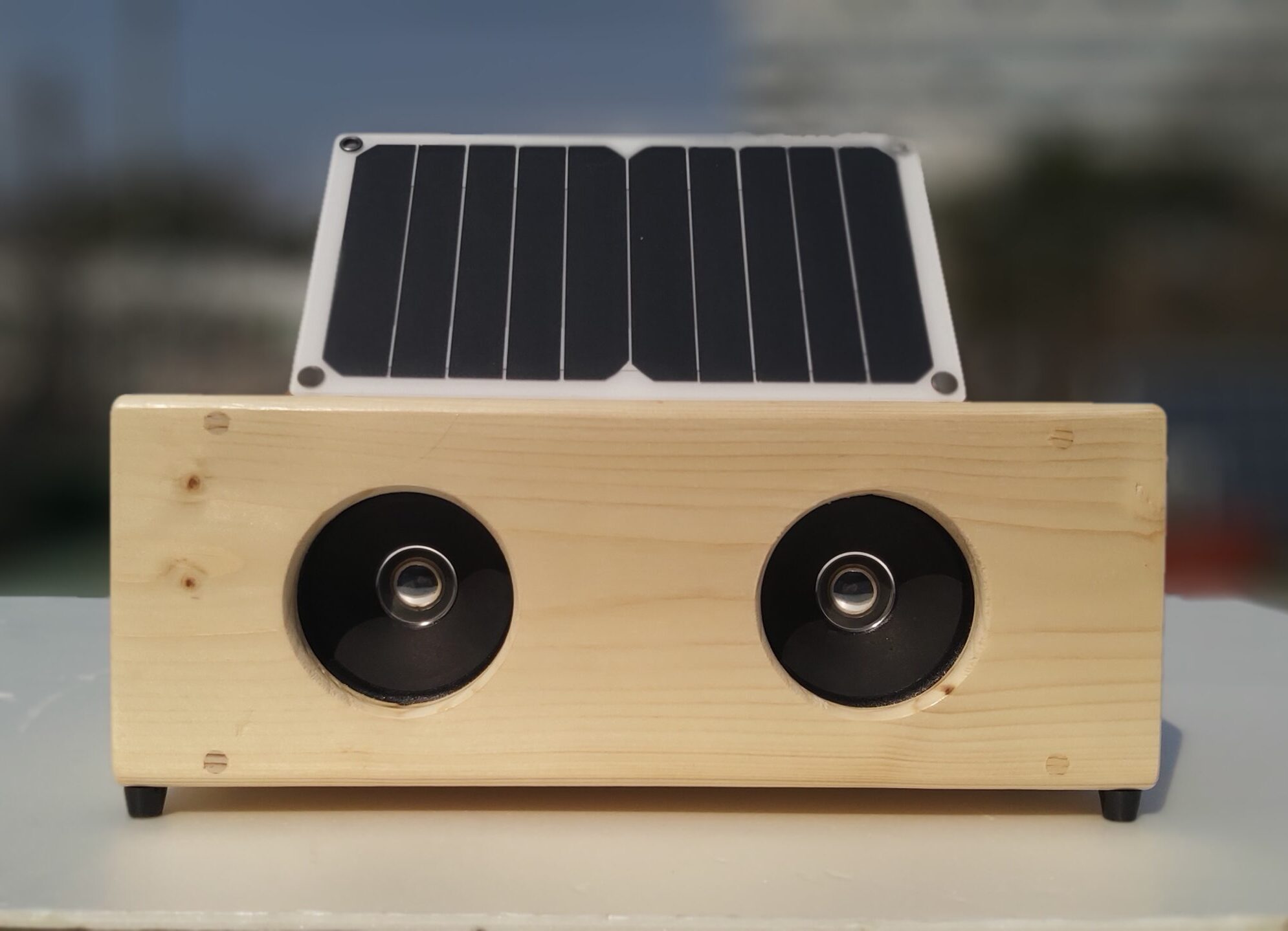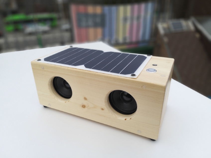 | 17. 햇빛오디오 음악을 좋아하는 사람들을 위한 오디오입니다. 원목으로 울림통(인클로져)을 만들고, 스피커와 앰프, 보조배터리를 연결하여 이동형으로 사용 가능합니다. 태양전지판이 고정되어 있어 햇빛으로 충전하며 음악을 들을 수 있습니다. [실재료비 15만원 / 반제품 18만원 / 완제품 22만원] (태양전지판 포함) |