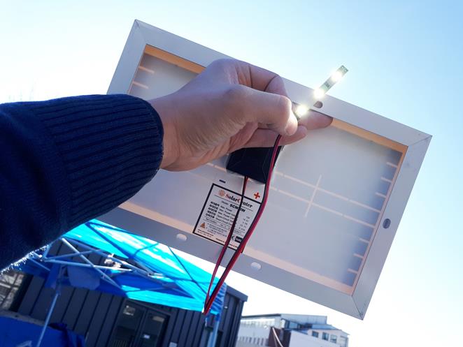 | 4. 햇빛저금통 (태양광 충전등) 태양광 정원등의 원리를 직접 구현해봅니다. 태양전지판과 충전지, 간단한 회로를 이용해서 낮 동안 햇빛에너지를 모아서 밤에 간단한 무드등으로 사용할 수 있습니다. [실재료비 14,000원(0.45W) 무납땜 15,000원(0.6W) 납땜] |