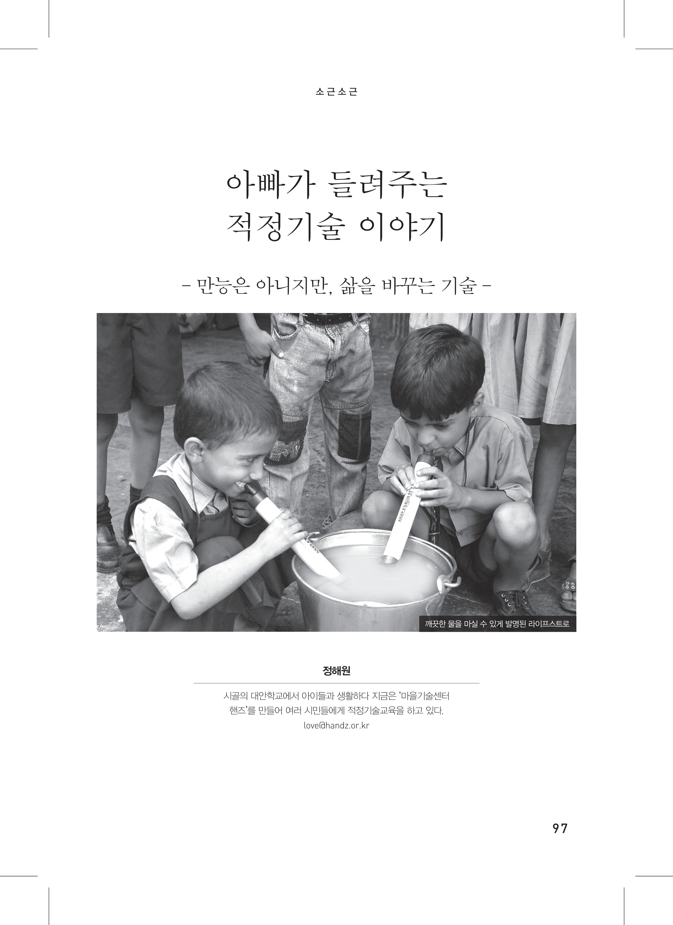 자료실 제목아빠가 들려주는 적정기술 이야기 (1~4편)2021-02-23 13:03작성자handzat 2017년 대안교육잡지 '민들레'에 기고했던 적정기술 관련 글입니다.아래 링크에서 원문을 볼 수 있습니다. 1. 만능은 아니지만, 삶을 바꾸는 기술 https://cafe.naver.com/handzat/362. 하늘에서 내리는 깨끗한 에너지, 태양광 https://cafe.naver.com/handzat/373. 태양열을 이용한 햇빛건조기 https://cafe.naver.com/handzat/38 4. 생활 속에서 적정기술 아이템 찾는 방법 https://cafe.naver.com/handzat/39 목록 이전<팩트풀니스>를 통해 살펴본 적정기술의 역할_정해원handzat 2021-02-23다음자료요청 : 게시판 아래 양식을 작성해주세요.handzat 2017-10-29 핸즈에 질문하세요!이 양식을 작성하려면 브라우저에서 JavaScript를 활성화하십시오.이름 *Email *전화번호 *질문하고 싶은 내용을 적어주세요 *개인정보 수집동의 *동의합니다.동의하지 않습니다.Submit Powered by MangBoard | 망보드 스토어